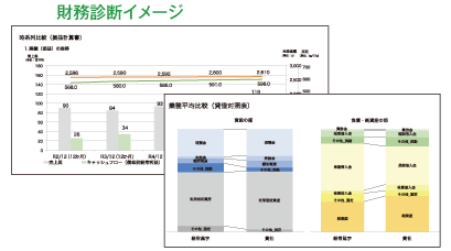 お客さまにご提供いただいた決算情報をもとに財務状況を分析し、農林水産事業の持つ同業他社の経営指標と比較することで、お客さまの強みや経営課題を見える化し、お客さまと共有しています。