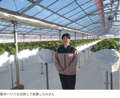 就農希望地であるB市の協力もあり、市内の施設野菜農家から既存施設を借り受け、当該施設を改修・整備し、B市の観光名所近くに観光イチゴ農園を開園しました。