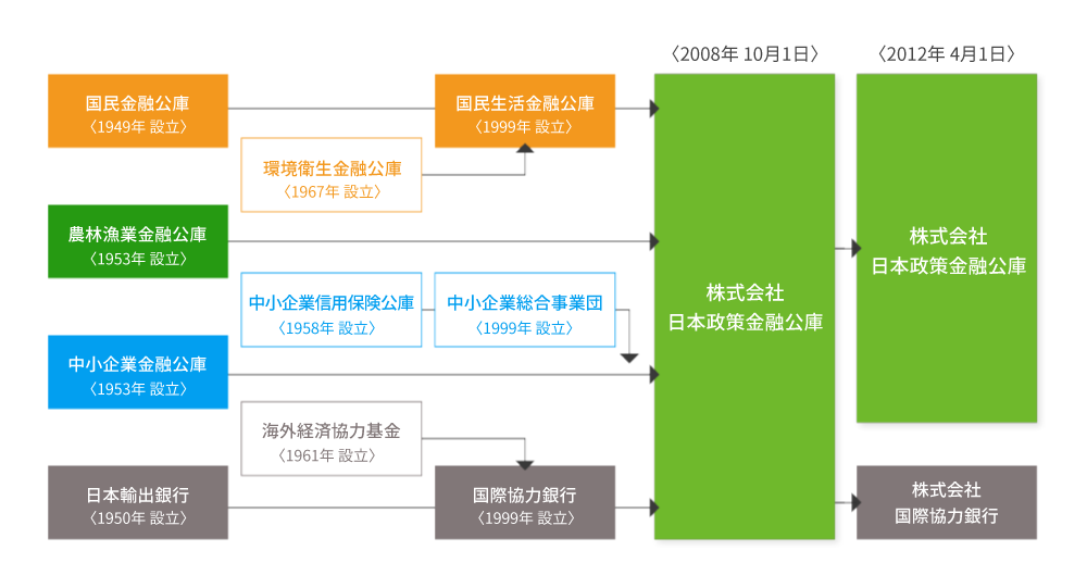 国民生活金融公庫、農林漁業金融公庫、中小企業金融公庫が解体・統合し、